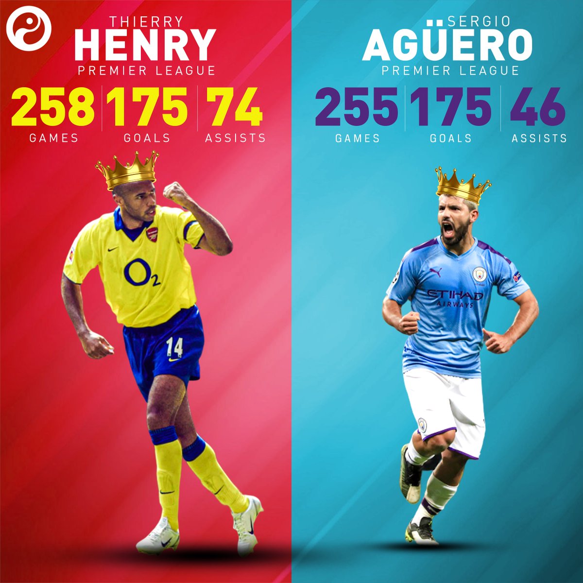 Squawka Football On Twitter Thierry Henry Sergio Aguero 258 Games 255 Games 175 Goals 175 Goals 74 Assists 46 Assists The Top Scoring Foreign Players In Premier League History Https T Co Mi0bx9vr04