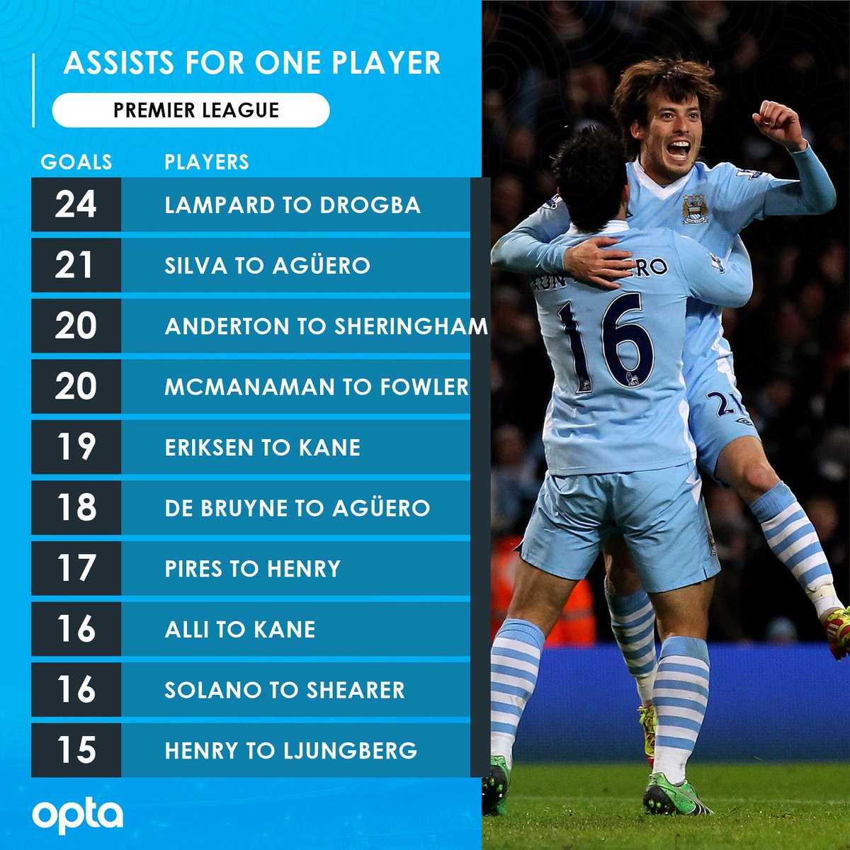 Optajoe On Twitter 21 David Silva Has Now Assisted 21 Of Sergio Aguero S Premier League Goals Only Frank Lampard 24 For Didier Drogba Has Set Up A Teammate More In